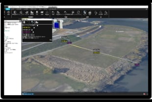 地形・河床・堤防・付帯設備などを3次元データとして統合しているので、現地に行くことなく、距離をコンピューター上で計測することができます。