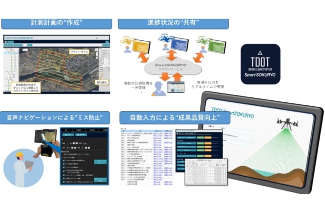 パスコのドローン計測におけるノウハウが詰まったアプリケーション。技術者の経験を問わず、ドローンによる高精度な測量作業を可能にするツールとなります。計測計画の作成、現場作業、書類作成をサポートし、効率的な作業が実現します。