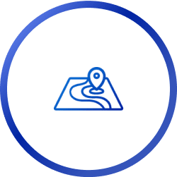 一度の計測走行で道路空間の3次元点群計測と路面性状調査、全周囲画像を取得。膨大な道路ストックの舗装健全度(ひび割れ・わだち掘れ・平たん性)を自動解析することで客観的・定量的に評価します。