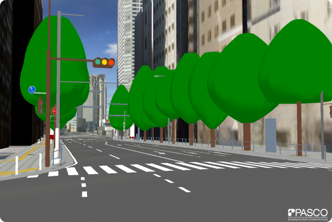 パスコのTerraExplorer™と組み合わせた可視性解析や、自動車開発におけるシミュレーションの路面データとして利用されています。